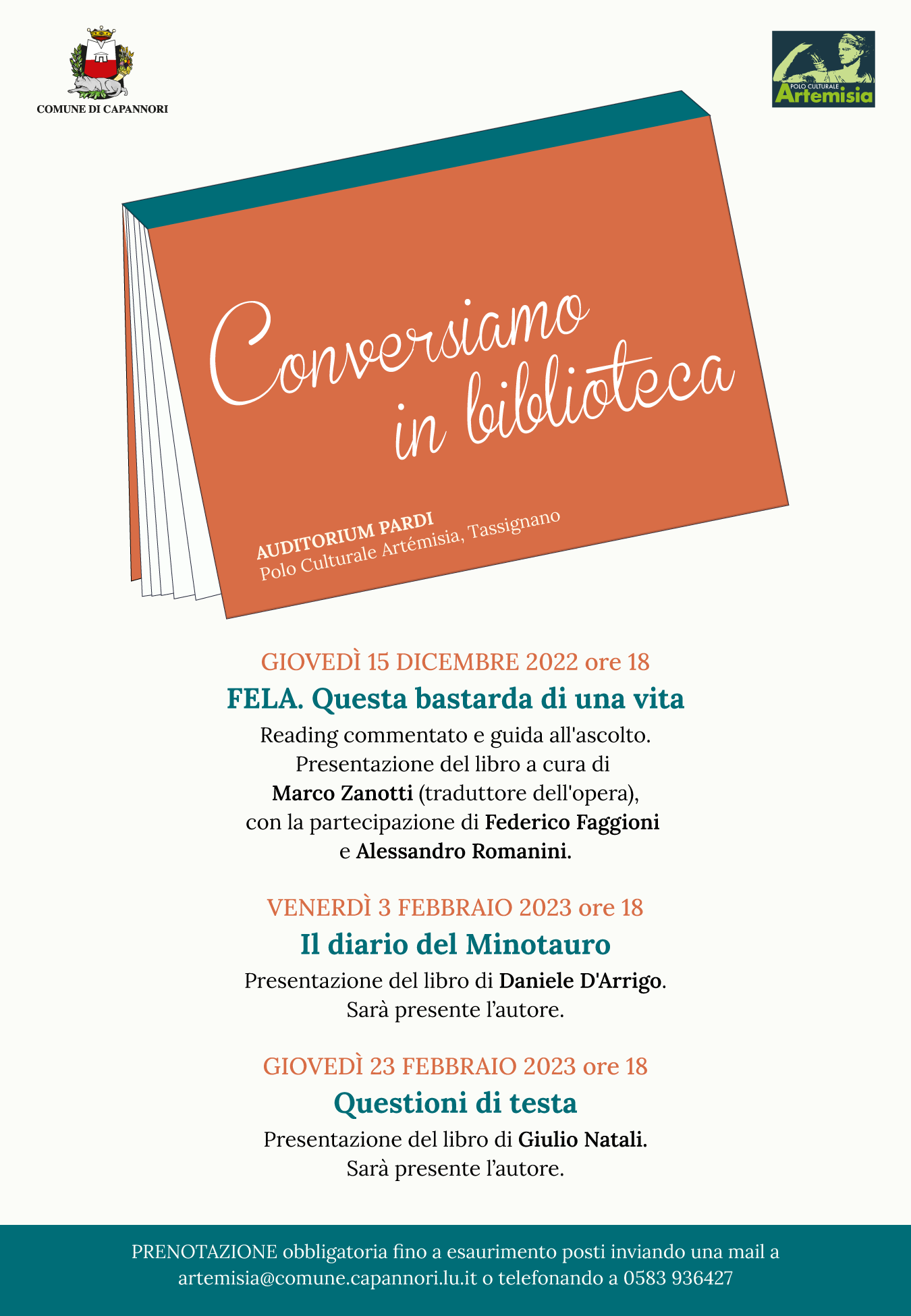 L'incontro è ad ingresso gratuito con prenotazione fino ad esaurimento posti inviando una mail all'indirizzo