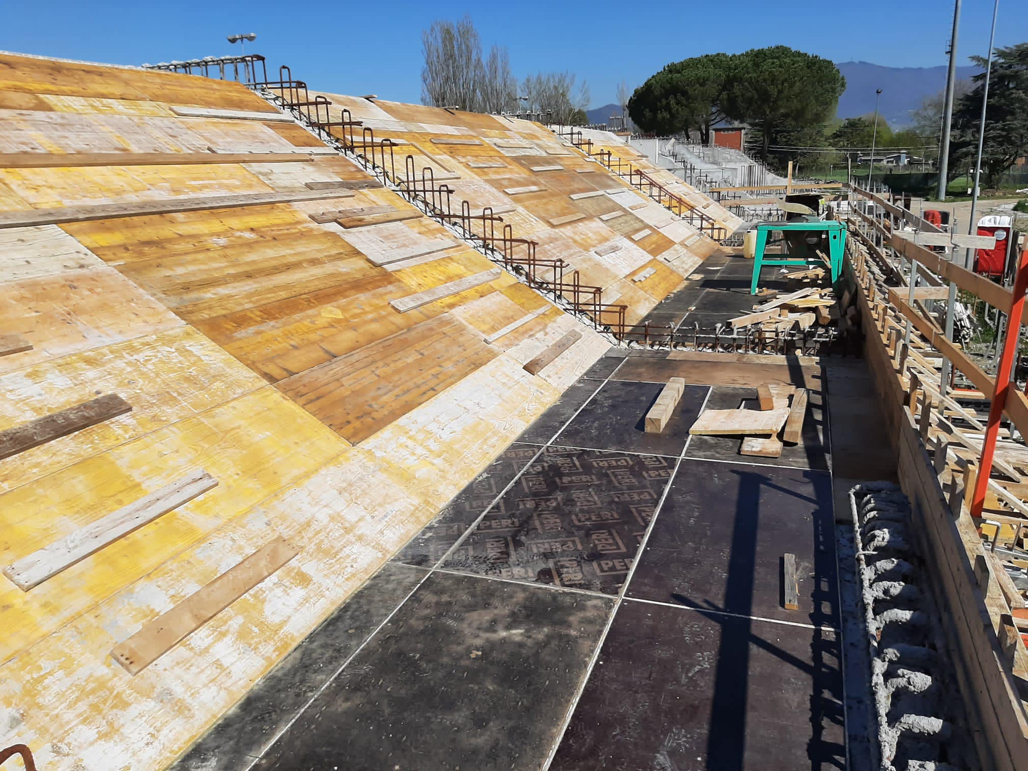 Il secondo lotto di lavori, dell'importo complessivo di circa un milione e trecentomila euro finanziato nell'ambito dei progetti Piu della Regione Toscana, dal Fondo Sport e periferie e dalla Fondazione Cassa di Risparmio di Lucca, oltre alla posa del manto di superficie della pista di atletica, prevede la costruzione di 4 nuove torri faro, della struttura di copertura della tribuna e di un percorso pedonale attrezzato per la ginnastica all'aperto di collegamento tra lo stadio e la piscina, aperto a tutti.