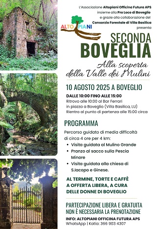 Seconda Boveglia alla scoperta della Valle dei Mulini il 10 agosto