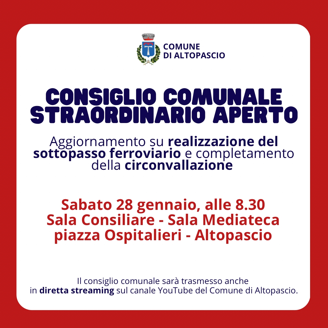 Consiglio comunale straordinario su aggiornamento per sottopasso e circonvallazione: ultimo giorno per prenotarsi per intervenire. I rappresentanti o i membri di gruppi di interesse (quali comitati, associazioni, circoli ecc.), hanno tempo fino a domani compreso, martedì 24 gennaio, per inviare l'email di prenotazione per fare il proprio intervento nel corso del consiglio di sabato prossimo. Per prenotarsi occorre scrivere alla presidente del consiglio comunale: