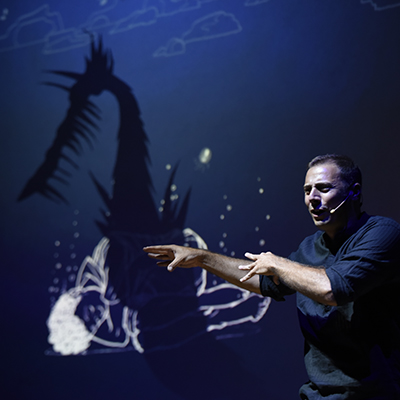 In scena il solo Peppe Macauda e la sua abilità narrativa ed espressiva, il racconto dell'artista, alternato tra l'italiano e il dialetto siciliano, viene supportato e reso ancora più toccante dal disegno luci di Simone Fini e dalle illustrazioni di Bruna Fornaro. Uno spettacolo adatto a tutte le età che immerge gli spettatori in una favola ambientata in fondo al mare e che rende vive le vicissitudini, le paure e i desideri del piccolo Shuma.