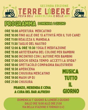 L’evento quest’anno si terrà in due giorni, 1 e 2 Giugno dalle ore 10 alle 21 (con il patrocinio del Comune di Capannori) sarà ricco di attività, esposizioni, dibattiti e momenti di condivisione. Sarà un’opportunità per incontrare produttori locali, esperti del settore e appassionati di agricoltura, il tutto in un clima di festa, accogliente e ricco di arte e artigianato. Accompagneremo gli ospiti con laboratori tematici per grandi e bambini che potranno inoltre godere della zona Relax, con amache in mezzo al verde oppure partecipare alle attività che si svolgeranno per tutte e due le giornate. Ci sarà inoltre una zona dedicata ai nostri amici a quattro zampe, infatti la mattina dalle 10 alle 13 “Ohana cinofila e socialità” organizzerà attività, giochi ed un percorso sensoriale.