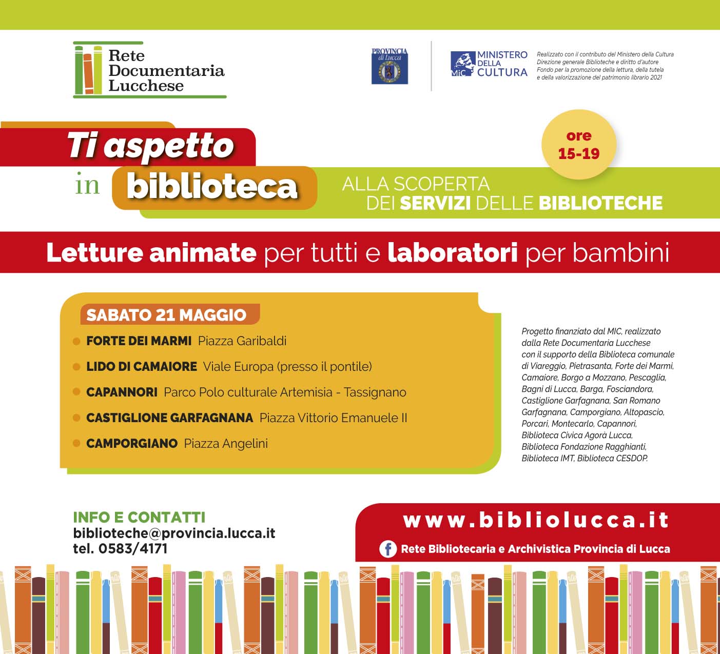 Terzo e ultimo appuntamento per l'iniziativa culturale itinerante "!Ti aspetto in biblioteca", finanziata dal Ministero della Cultura e realizzata dalla Rete Documentaria Lucchese della Provincia di Lucca.