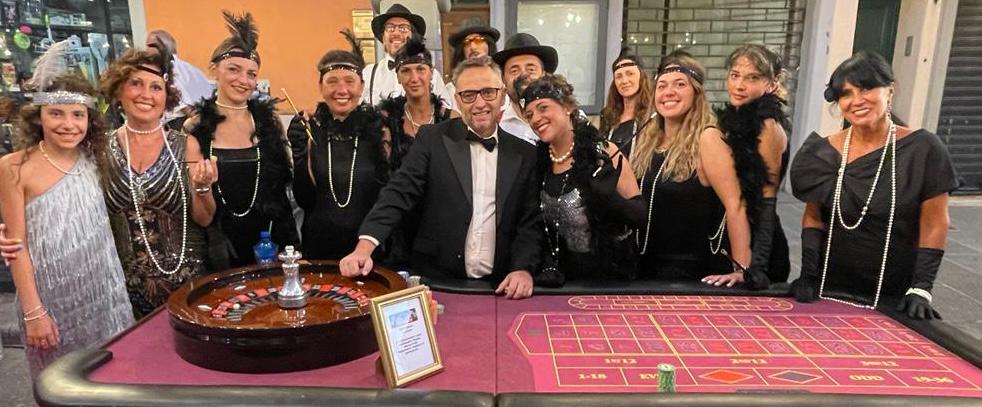Musica anni 20 ,tavoli da gioco e roulette trasformeranno il centro del paese in un'atmosfera unica .