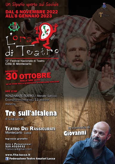 Domenica30 ottobre, dalle ore 16, al Teatro dei Rassicurati di Montecarlo la F.I.T.A. Comitato Provinciale Lucca, in avvio della dodicesima edizione del Festival Nazionale “L’Ora di Teatro - Un Sipario aperto sul Sociale”, dedicherà un omaggio alla memoria di Giovanni Fedeli, Presidente de La Cattiva Compagnia e artista eclettico del panorama culturale lucchese, prematuramente scomparso un anno fa.