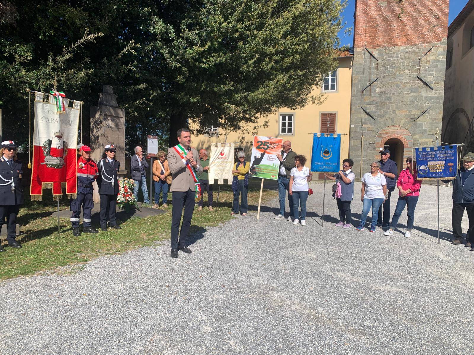 Successivamente sono intervenuti il presidente della Provincia di Lucca, Marcello Pierucci, il Prefetto di Lucca Cristina Favilli, il Presidente della Regione Toscana Eugenio Giani, la presidente della Commissione Giovani, Asia Spinetti, il presidente dell’Isrec Lucca Mario Regoli e il Presidente di Anpi Capannori, Luipi Lippi che ha parlato a nome del Comitato Provinciale Anpi Lucca. Al termine degli interventi il Prefetto ha consegnato al sindaco la motivazione del riconoscimento ed ha apposto la medaglia d'oro sul labaro del Comune.