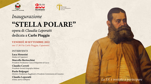 Sarà inaugurato venerdì 30 settembre, alle ore 17.30, davanti alla scuola primaria di Capannori 'Amalia Bertolucci Del Fiorentino', nel centro del capoluogo, il monumento dedicato all'esploratore capannorese Carlo Piaggia (1827-1882). La statua intitolata 'Stella polare' è stata realizzata su iniziativa del Comune e grazie al contributo della Fondazione Cassa di Risparmio di Lucca, dall'artista fiorentina Claudia Leporatti. Dopo l'esame delle sei proposte artistiche, la Commissione selezionatrice ha scelto il progetto 'Stella Polare' dell'artista fiorentina Claudia Leporatti, ritenendolo il più rispondente per raffigurare il valore storico e simbolico dell'anomala e originale figura di esploratore di Carlo Piaggia.
