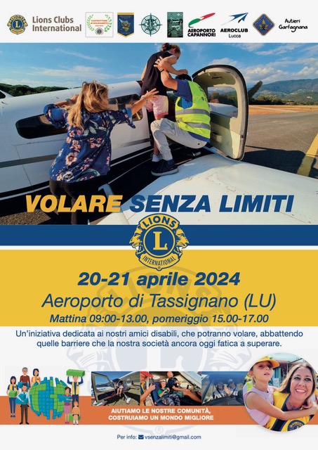 Ci stiamo avvicinando a grandi passi a questa che si preannuncia essere un'altra edizione da record!!! Moltissime le adesioni già pervenute alla mail Questo indirizzo email è protetto dagli spambots. È necessario abilitare JavaScript per vederlo. ma grazie alla messa a disposizione, da parte dell’aeroclub “Carlo Del Prete” di Lucca e dell’Aeroporto di Lucca-Tassignano di ben 5 aerei di cui: 3 biposto compreso il pilota, 2 da quattro posti pilota compreso, potremo accontentare ancora tantissime richieste. "Volare senza limiti" è un Service che tocca profondamente il cuore di coloro che ne beneficiano, e ancor di più di coloro che vi partecipano come volontari: la gioia manifestata dai ragazzi rappresenta una ricompensa commovente e gratificante per tutto il grande lavoro indispensabile per rendere possibile l'evento. L'entusiasmo dei ragazzi, delle loro famiglie, la gioia e la felicità che si leggono nei loro occhi riempie i cuori dei volontari che per due gironi si mettono a disposizione per far si che questo sogno si avveri. Da quest’anno, doppio appuntamento quindi doppia felicità. Per coloro che lo desiderano, sarà possibile fermarsi per il pranzo organizzato presso uno degli hangar aeroportuali. Il pranzo offerto a titolo gratuito, sarà interamente preparato dall'associazione Autieri di Castelnuovo di Garfagnana che ringraziamo.