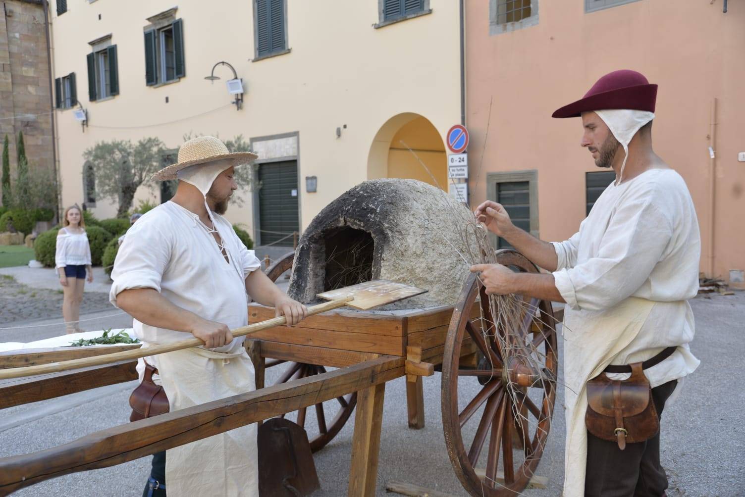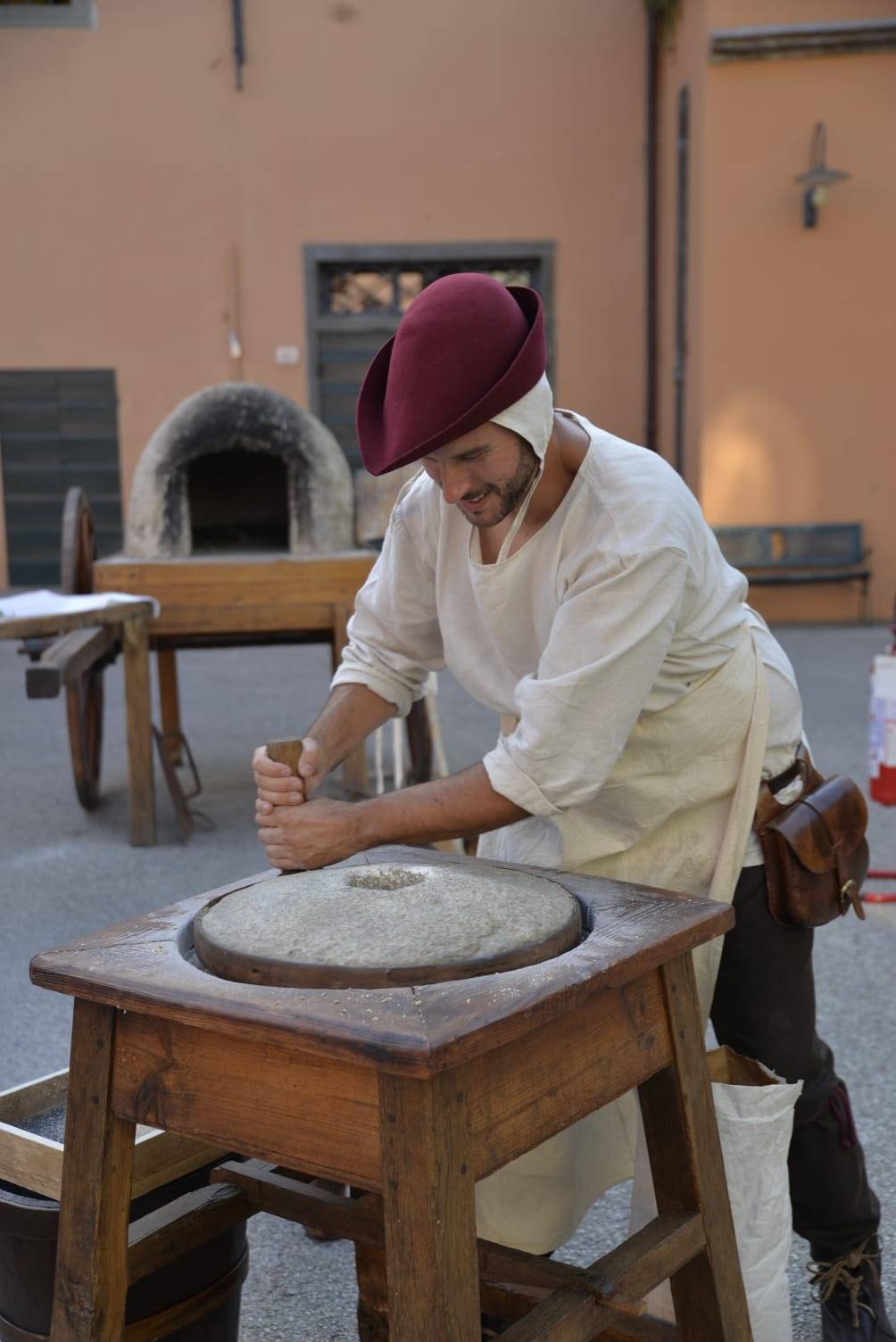 Altro grande protagonista della serata è stato, in piazza Garibaldi, il Forno Medievale affiancato dalla macina in pietra: un esemplare unico reperito e restaurato dalle Contrade San Paolino, che ha riprodotto fedelmente, sotto gli occhi degli spettatori, tutto il processo di macinatura, seguito dalla cottura del pane e della focaccia tipica dell'età di mezzo. Il tema del cibo è stato centrale anche grazie al Calderon d'Altopascio realizzato dalla Misericordia di Altopascio insieme al Comune, che ha rievocato l'antica usanza di distribuire cibo ai viandanti di passaggio ad Altopascio. La Misericordia ha offerto gratuitamente a tutti i partecipanti una pastasciutta, proprio nel segno dell'ospitalità che da sempre contraddistingue l'anima cittadina.