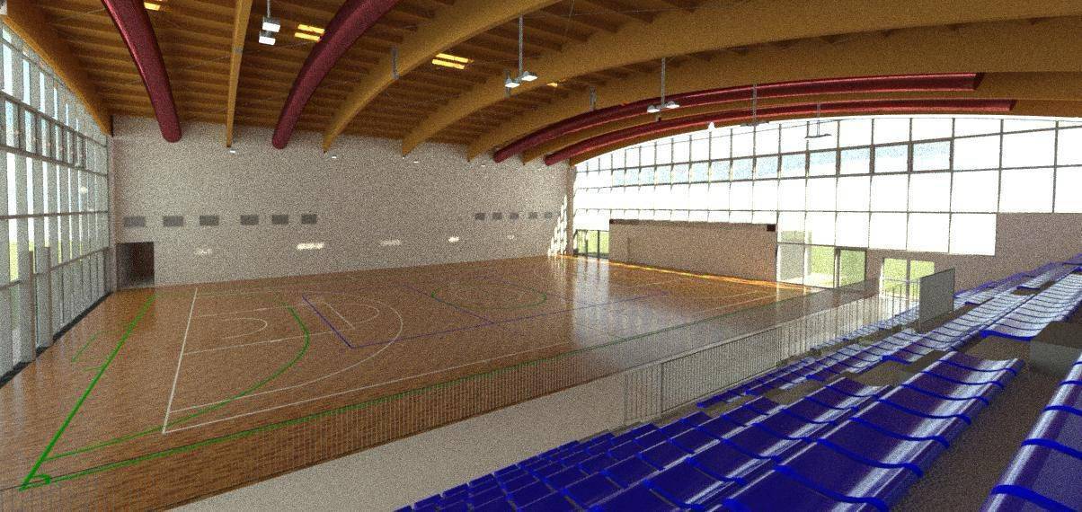 Qui sotto i rendering di come sarà il nuovo palazzetto secondo il progetto esecutivo che stiamo candidando ai vari bandi.