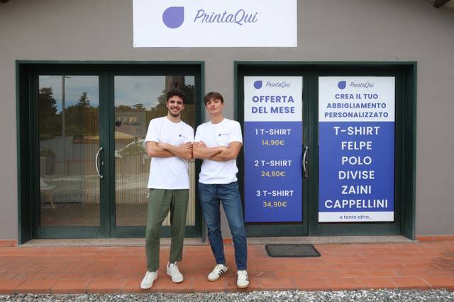 Un ambiente accogliente e dinamico, dove privati e aziende possono dare vita alle loro idee in modo facile, veloce e innovativo: questo è Printa Qui, il progetto di Francesco Sorrentino e Tommaso Giovannoni, due giovani imprenditori classe 2002 con una grande passione per il mondo dell'abbigliamento e della personalizzazione.