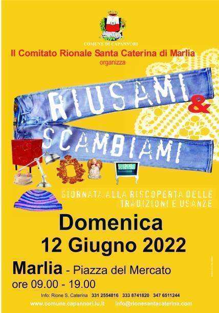 Il Comitato Rionale Santa Caterina di Marlia con il patrocinio del comune di Capannori organizza, questa domenica 12 giugno in via Paolinelli a Marlia all’interno della struttura coperta del mercato di piazza del Mercato con orario continuato dalle ore 9 alle 19, il secondo appuntamento annuale con il mercatino “Riusami e Scambiami”.