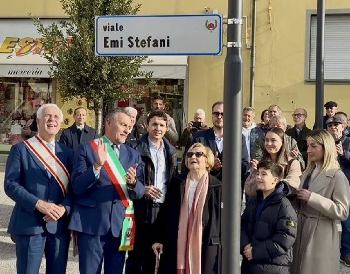L'insegna è stata scoperta da Primetta, moglie di Emi Stefani. Presente anche la figlia Paola Stefani, oggi presidente di Sofidel dopo la prematura morte, a gennaio di quest'anno, del fratello Edilio Stefani. "Mio padre – ha detto – sarebbe stato felice oggi, e onorato di questo riconoscimento, anche se so che si sarebbe un po' imbarazzato. Era un uomo semplice, che non amava mettersi al centro. Parlava poco, ma lavorava molto. Per questo penso che una strada sia per lui un ricordo giusto: qualcosa di concreto, lineare, che serve davvero a chi la percorre. Lui era così. Aveva un legame profondo con Porcari: per lui questo paese era casa, nel senso più vero del termine. Vorrei ricordare anche mio fratello Edilio, che ha condiviso con me ogni passo di questo percorso. Accogliamo con sincera gratitudine questo gesto dell'amministrazione comunale, che sentiamo come un riconoscimento ai valori in cui nostro padre ha sempre creduto".