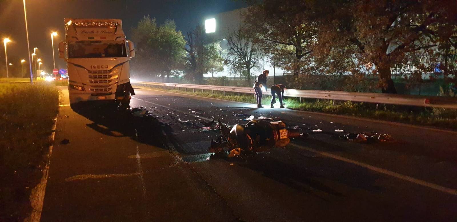 Tragedia della strada in via del Frizzone all'uscita del casello autostradale di Capannori. L'incidente è avvenuto poco dopo le 17 con uno scooter, un cinquantino, che è stato travolto da un camion Per l'uomo che si trovava in sella al motociclo, un cittadino marocchino di 29 anni, non c'è stato niente da fare. Sul posto un'ambulanza con medico della Croce Verde di Porcari e una pattuglia della polizia municipale di Capannori per i rilievi. Secondo una prima, sommaria ricostruzione dei fatti, il camion stava immettendosi sulla via del Frizzone proveniente dall'uscita del casello quando è sopraggiunto lo scooter. Impatto tremendo con il piccolo motociclo che si è, letteralmente, frantumato.