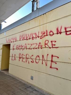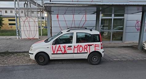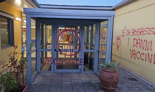 Scritte ‘No Vax’ al Centro Sanitario di Capannori in Piazza Aldo Moro. Frasi offensive e intimidatorie sono state apposte nella notte sui muri e sulle porte del distretto e del dipartimento della prevenzione e sulle auto di servizio parcheggiate nel perimetro della struttura.