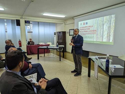 Lo sviluppo della pioppicoltura nella Piana Lucchese per ridurre le terre incolte, valorizzare il reddito degli agricoltori, migliorare l’aria della Piana e contrastare i cambiamenti climatici è il tema che è stato al centro del convegno promosso dal Comune in collaborazione con la Regione Toscana e la Provincia di Lucca svoltosi questa mattina (mercoledì) nella sala consiliare del Comune. L’incontro si è aperto con i saluti del sindaco Luca Menesini ed è stato anche importante occasione per presentare la nuova misura PSR 23/27 SRD05 della Regione Toscana “Impianti forestazione/imboschimento e sistemi agroforestali su terreni agricoli’ che prevede importanti contributi rivolti a proprietari o possessori (pubblici o privati) di superfici agricole.