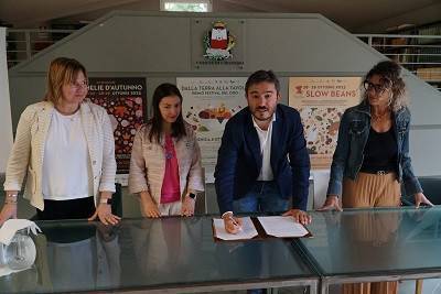 Successo per il '1° Festival del cibo - Dalla Terra alla Tavola' che si è svolto ieri (domenica) dalle ore 9.30 alle ore 18, al polo culturale Artèmisia, quale evento di apertura del programma di 'Aspettando Slow Beans', la manifestazione sui legumi e sul buon cibo locale, promossa da Slow Food Italia, Slow Food Toscana, Piana del Cibo, Comune di Capannori, Centro Culturale Compitese, Foodclic, ANCI Toscana, Condotta Slow Food Lucca Compitese e Orti Lucchesi APS, Distretto di Economia Civile Provincia di Lucca, Vetrina Toscana. La giornata, che si è aperta con i saluti del sindaco Luca Menesini, ha visto il rilancio della 'Piana del Cibo' con la firma del nuovo accordo di gestione partecipata delle politiche del cibo tra i Comuni di Capannori, Altopascio, Porcari e Villa Basilica. A sottoscrivere l' accordo sono stati l'assessore alle politiche del cibo del Comune di Capannori, Francesco Cecchetti, l'assessore alla scuola del Comune di Porcari, Eleonora Lamandini, la consigliera comunale del Comune di Altopascio, Federica Biagetti e il sindaco di Villa Basilica, Elisa Anelli. Il '1° Festival del Cibo è stata anche l'occasione dell'avvio del progetto europeo FoodCLIC, con l'attivazione dei primi workshop partecipativi di visioning e pianificazione strategica. Una giornata di promozione e valorizzazione del territorio e dei suoi prodotti agricoli. Tante persone hanno partecipato, in particolare, ai laboratori sui prodotti tipici locali: i funghi, i tartufi, l'olio, le castagne, i vini, la lezione su come si cucina la zuppa frantoiana, ed hanno visitato il mercatino dei produttori locali e la mostra degli antichi attrezzi contadini.