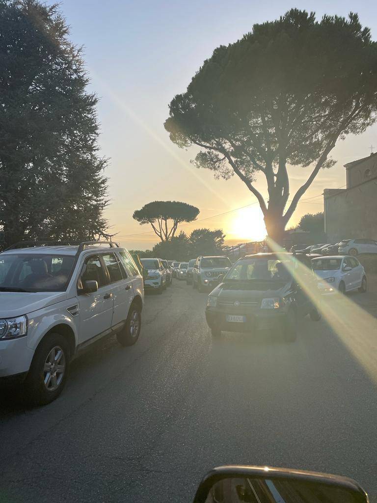 Roba da mettersi le mani nei capelli gente: niente posti auto e in cima alla salita, al momento di scollinare, blocco causato dalle vetture che provenivano in senso opposto per cui almeno una ventina di minuti tutti fermi senza sapere cosa fare, inchiodati a poche decine di metri di distanza dal sagrato della chiesa del paese.