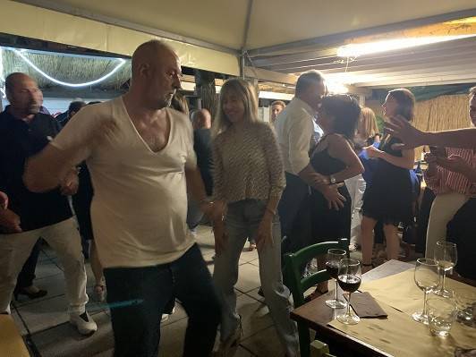 La musica ha contagiato piano piano tutti: dai classici degli Earth, Wind& Fire, Supertramp, America, Carly Simons, Harry Nilson, per passare a Tullio De Piscopo, Tony Esposito, Ribo Gaetano con la mitica Gianna e molti altri ancora piano piano sono stati spostati i tavolini e le sedie per fare spazio e improvvisare una pista da ballo per poter ballare e lasciarsi andare a ritmo di musica.