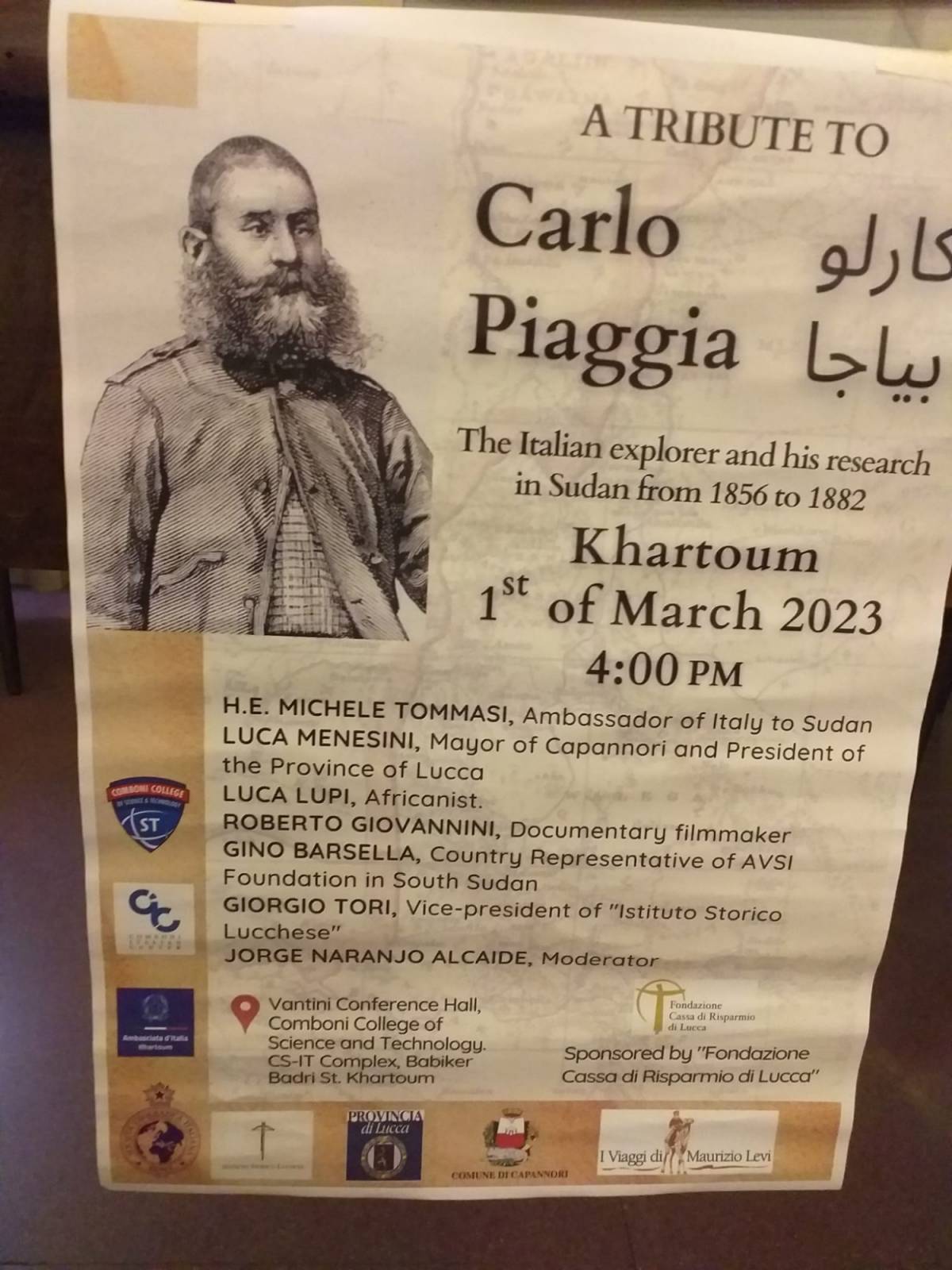 L'istituto storico lucchese che da cinquant'anni ricorda la figura di Carlo Piaggia - attraverso studi, ricerche, pubblicazioni di volumi e conferenze - parte per una spedizione nel Sudan per commemorare l'esploratore lucchese che esplorò l'Eritrea, l'Etiopia, territori intorno alle foci del Nilo Bianco e del Nilo Azzurro entrando in contatto con la tribù Niam- Niam, oggi nota come Azande.