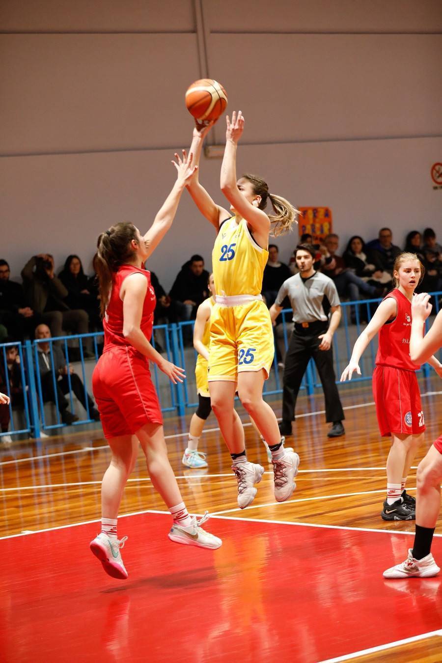 Le gialloblù partono fortissimo con Parlanti, in vena di grazia con ben 12 punti realizzati solo nel primo periodo e vera cecchina sui tiri dalla lunga distanza (3 su 3).