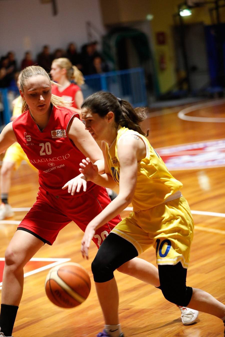 Belfiori è costretta ad uscire a 4 minuti dal termine del periodo, poi rientrata nel successivo, per un problema alla spalla, ma è Giusti adesso a fare voce grossa sotto canestro ed a frenare la foga delle ospiti.