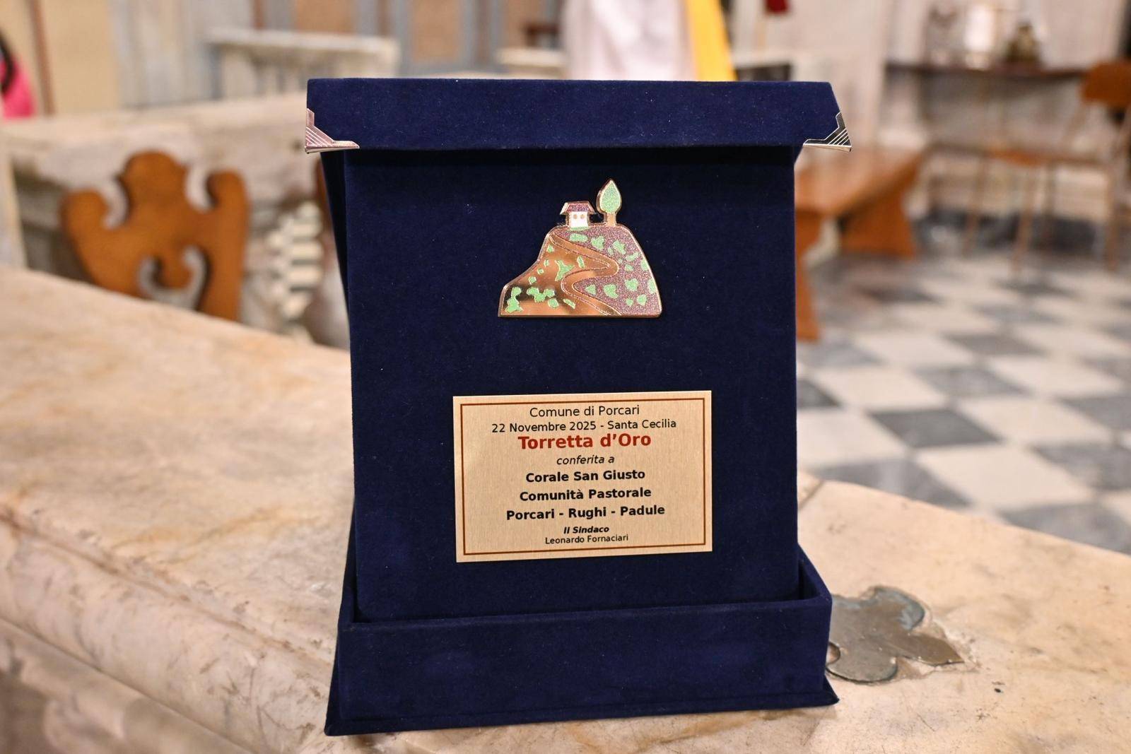 Si legge sulla pergamena consegnata insieme alla Torretta d'Oro: "Attraverso il suono dell'organo e le voci dei suoi coristi, la Corale ha accompagnato generazioni di fedeli nella preghiera e nella vita comunitaria, divenendo una presenza viva e significativa nella storia religiosa e culturale di Porcari. Oggi, come ieri, la Corale continua la sua missione con entusiasmo, nella convinzione che cantare per il Signore sia uno dei modi più belli per servire la Chiesa e costruire comunione tra le persone. Ma oltre al canto, c'è un valore ancora più profondo: quello della socialità e della condivisione. Ritrovarsi attorno alla stessa passione per la musica significa creare legami, vivere la gioia dello stare insieme e mettere i propri talenti al servizio di qualcosa di più grande. La Corale di San Giusto è quindi molto più di un gruppo musicale: è una famiglia che canta la fede, la comunità e l'amicizia, settimana dopo settimana, nota dopo nota".