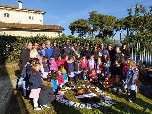 In occasione della giornata Nazionale degli Alberi, 21 novembre, i bambini della sezione di 5 anni dell’Istituto Comprensivo di Montecarlo hanno piantato nel giardino della scuola uno dei tre alberi che sono stati donati dalla stazione dei Carabinieri Forestali di Capannori: il sorbo! Gli altri alberi regalati sono un Ficus di Falcone, molto importane per il suo significato, ed una quercia. Presenti all’evento il dirigente scolastico Angelica Cecchi, il Vice Sindaco Marzia Bassini, i carabinieri del comando e tutte le maestre. I bambini per festeggiare hanno accompagnato l’evento con una canzone e hanno creato dei biglietti, che sono stati posizionati a terra in cerchio attorno all’albero.