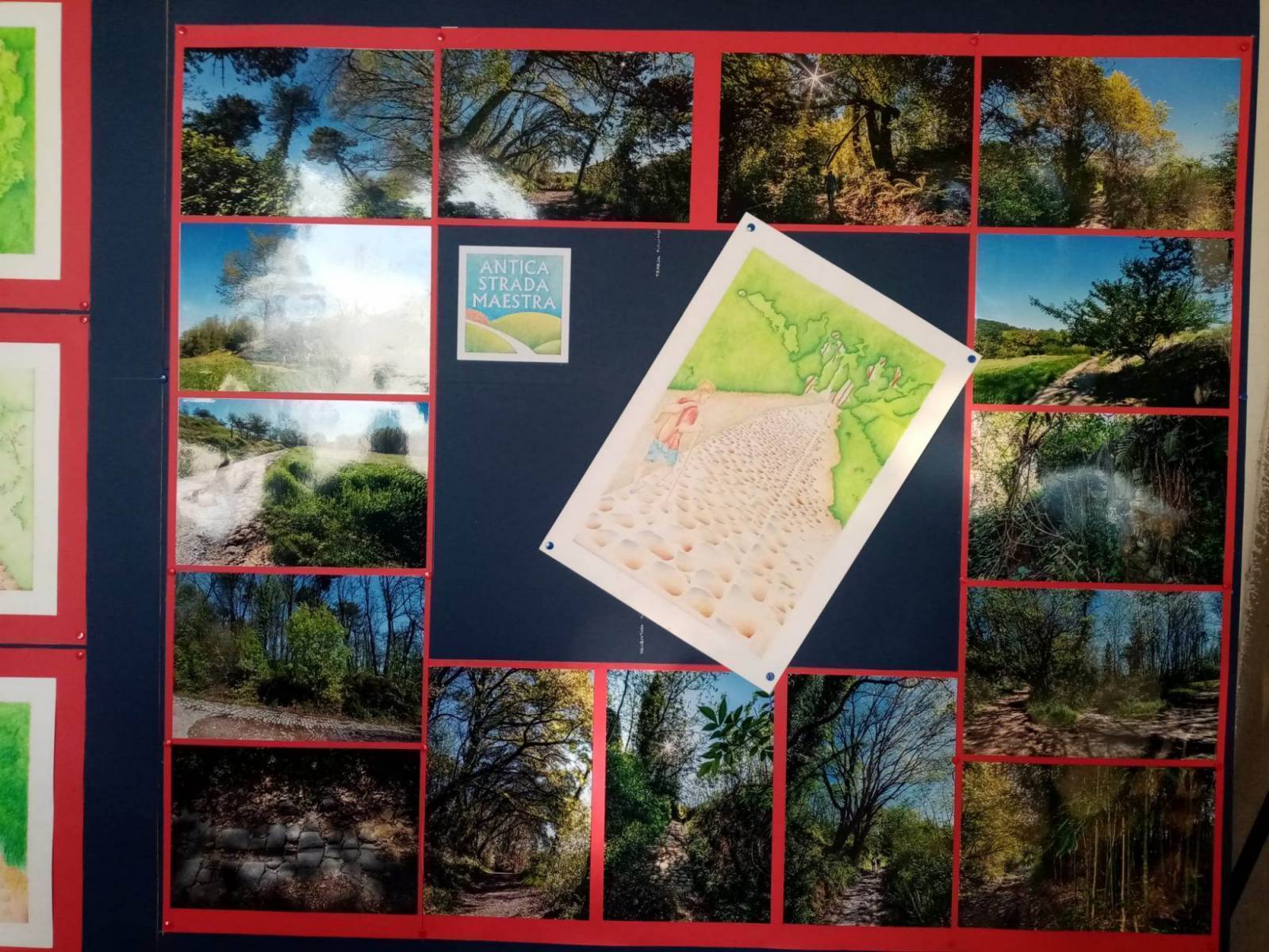Il titolo si riferisce all'antica stradamaestra postale lucchese che si trova nella parte collinare di Pescia in località Veneri confinante con i territori del comune di Capannori e di Montecarlo. Più nello specifico attraversa boschi, incrocia il torrente Puzzola in direzione Portici. Dell'allora tracciato è rimasto il vecchio selciato che si può osservare per circa 1 km mentre la restante parte si è deteriorata ma tutt'oggi ancora leggibile. La mostra propone una serie di illustrazioni su pannelli che spiegano i contenuti dal punto di vista storico e geografico del territorio che va dalla Valdinievole al mar Tirreno. La documentazione - oltre ai disegni realizzati a matita con la tecnica del chiaroscuro dagli studenti - è arricchita e curata da Claudio Minghi che così ha spiegato l'importanza dell'iniziativa:" I disegni e le fotografie aiutano a capire il territorio e a sensibilizzarlo".