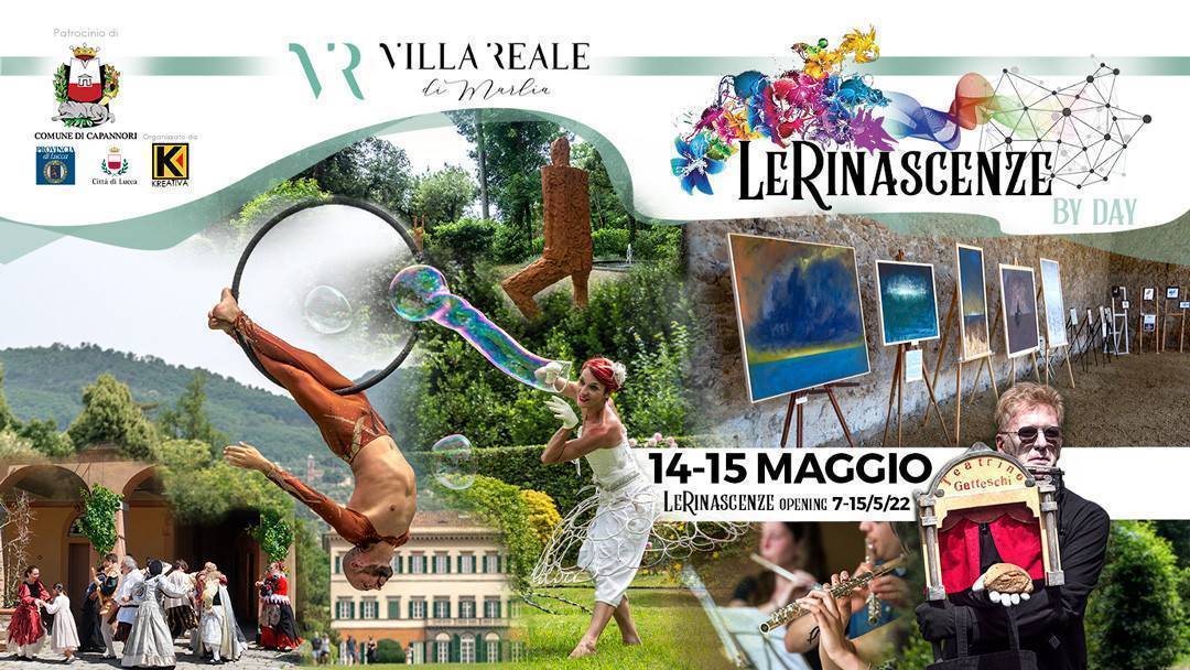 Ritorna con rinnovato entusiasmo la manifestazione d'arte "Le Rinascenze", patrocinata dal comune di Capannori. Divenuta ormai un appuntamento irrinunciabile di fine primavera, andrà in scena nella versione "by day" sabato 14 e domenica 15 maggio (dalle 10 alle 18) nel parco di Villa Reale a Marlia e per la prima volta anche nelle Scuderie, struttura appena ristrutturata che sarà inaugurata proprio in occasione della manifestazione. Sarà un'opportunità unica per apprezzare ancora meglio l'architettura, la storia e il verde che nasconde questo splendido gioiello ottocentesco, grazie alla sinergia con questa manifestazione ideata da Kreativa, la scuola d'arte di Lucca, che valorizzerà ogni forma di arte.
