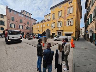 Sono partiti questa mattina in piazza Cittadella, alla presenza del sindaco Mario Pardini e dell'assessore ai lavori pubblici Nicola Buchignani, i lavori di rifacimento dell'asfalto che si concluderanno nel pomeriggio di domani (martedì 15 ottobre). Intorno al monumento a Giacomo Puccini e nella piazza che ospita l'accoglienza del Puccini Museum oltre a tante attività commerciali sarà impiegato asfalto natura. I lavori sono finanziati dal Comune di Lucca per un importa di 50 mila euro.
