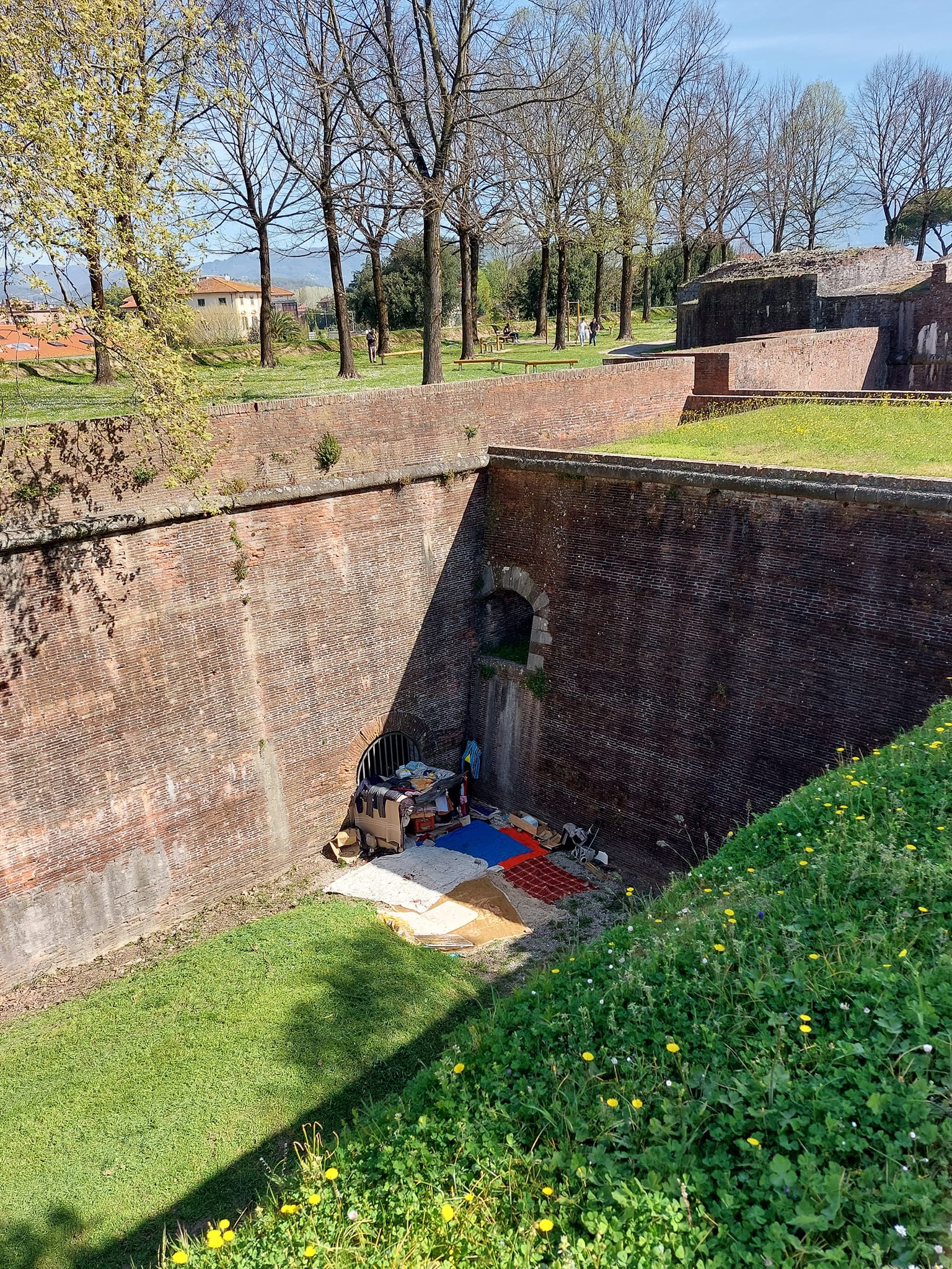 Marco Santi Guerrieri, presidente dell’associazione “Lucca ti voglio bene”, dopo il sollecito fatto già i primi giorni di questo mese alla polizia municipale alla quale richiedeva un immediato intervento, continua a domandarsi perché due anziani settantenni siano accampati da quasi un mese, nello sterrato sottostante il baluardo San Martino, subito fuori porta Santa Maria.