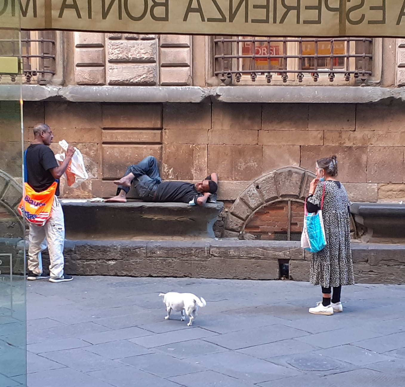 Gente guardate queste immagini che sono state scattate dal sottoscritto poco fa in via Roma. Sulle panchine in muratura di palazzo Cenami, esattamente come ieri sera, ci sono due simpatici immigrati, ma potrebbero essere anche italiani, stravaccati con tanto di piedi nudi senza alcun rispetto per l'ordinanza antibivacco firmata dal sindaco Mario Pardini ed avallata da tutta la giunta che se continua così finirà per diventare anch'essa una giunta di bradipi. Infatti non si capisce cosa ci stia a fare un assessore e ci riferiamo a Giovanni Minniti se non si fa rispettare quel che si è strombazzato a destra e a manca. La sinistra, ovviamente, ci marcia, ma di fronte a questo spettacolo e a quello che si vede la sera tardi in piazza San Michele la domanda è: ma ci sono o ci fanno a palazzo dei Bradipi?