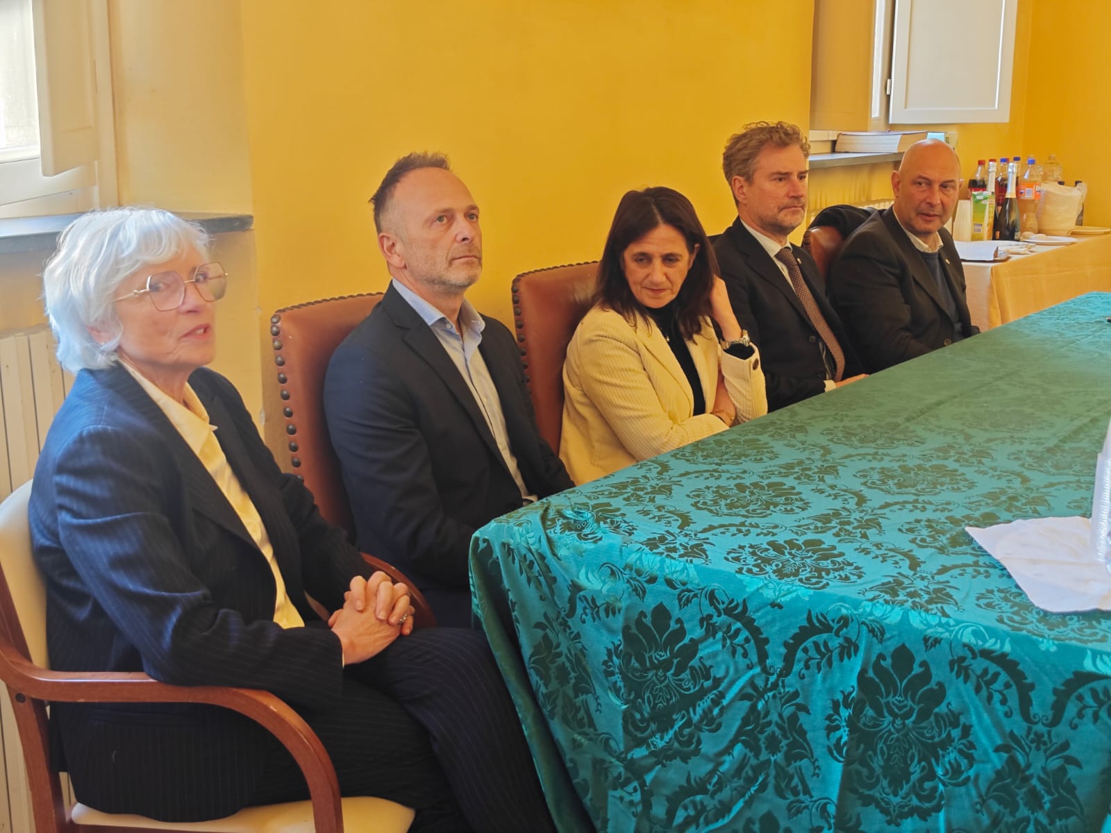 Passaggio di gestione delle residenze sanitarie assistenziali comunali dalla cooperativa sociale Progest alla cooperativa La Salute. Il sindaco Mario Pardini, l'assessore al sociale Giovanni Minniti, la direttrice di Zona distretto Piana di Lucca dell' Azienda USL Toscana nord ovest Eluisa Lo Presti, il dirigente al sociale Lino Paoli, Enrico Simonetti presidente della Cooperativa La Salute e Rossana Mori di Proges, si sono incontrati nella RSA Pia Casa di via Santa Chiara per presentare l'avvicendamento. Erano presenti anche l'assessore al patrimonio Moreno Bruni e il consigliere con delega alla sanità Alessandro di Vito.