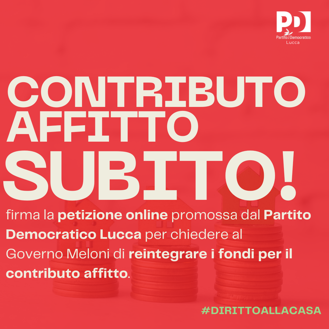 Prosegue la raccolta firme per chiedere il reintegro dei fondi per il contributo affitto a livello nazionale e a livello locale: "contributo affitto subito!", questo il nome della campagna promossa dal Partito Democratico di Lucca.