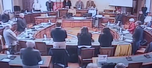 Dopo la sospensione in precedenza concordata dalle ore 20,30 alle 21,30, il consigliere di minoranza del PD Gianni Giannini ha contestato la mozione, definendola una “difesa schizofrenica” e citando anche il defunto presidente della repubblica Luigi Einaudi. Ha proseguito il suo intervento richiamando tutte le azioni e parole scurrili che l’attuale leader della Lega e i suoi predecessori avevano utilizzato nel corso degli anni contro l’Italia, che ora invece osannano.