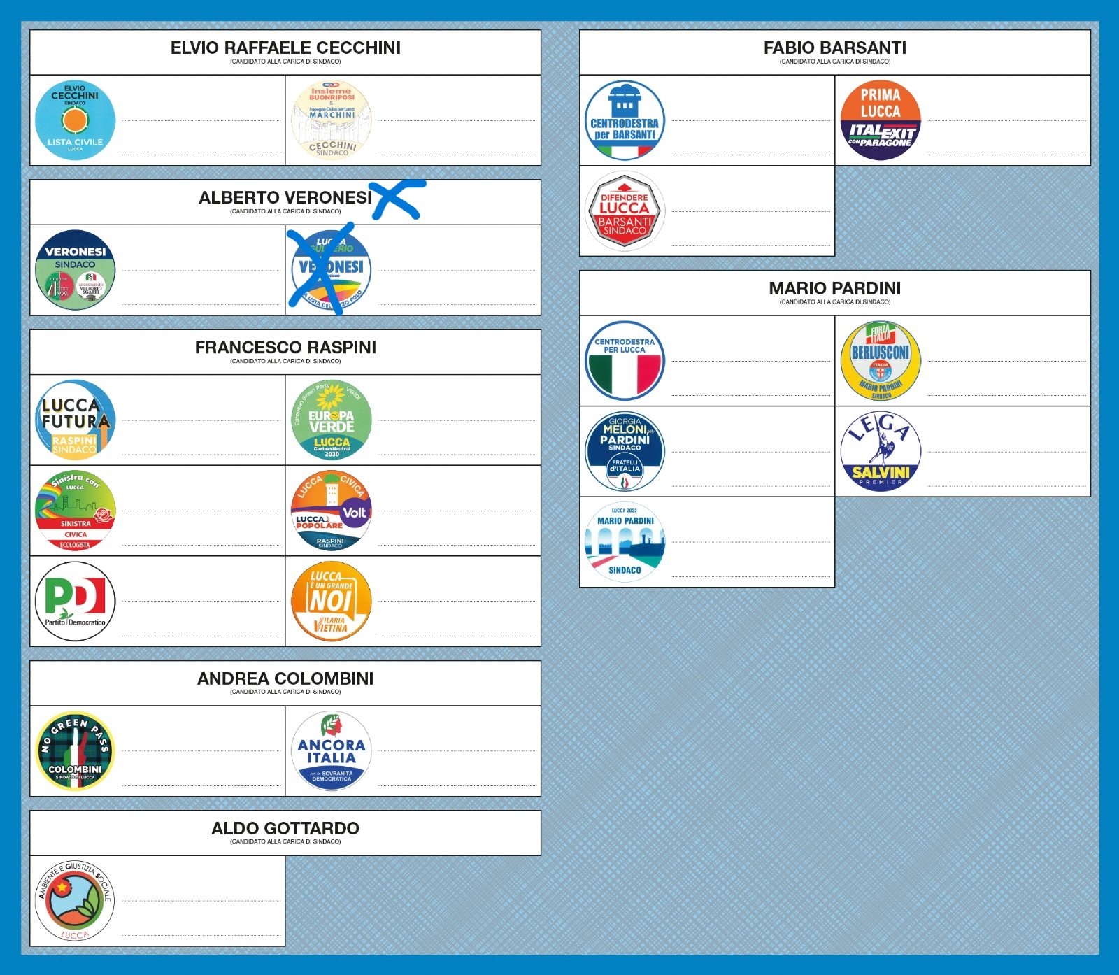 "Il 12 giugno al voto - conclude - bisogna dare forza all'unico progetto di cambiamento credibile, al Terzo Polo per Alberto Veronesi Sindaco".