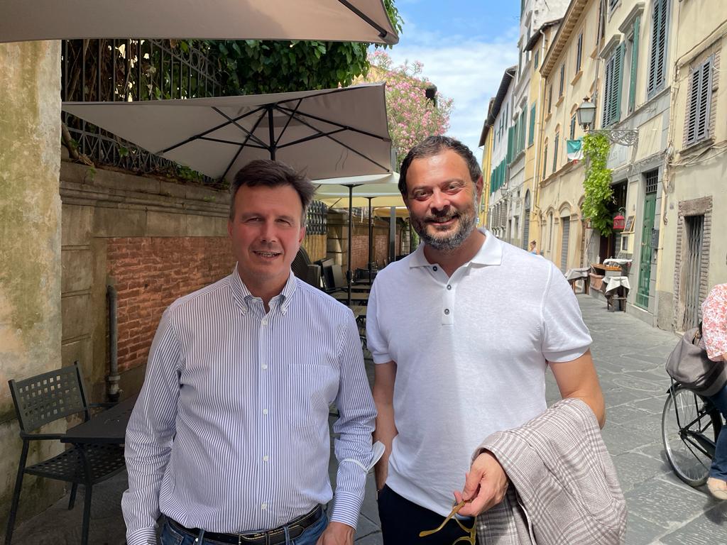 Nella foto: Martinelli e Fantozzi questa mattina di ritorno dalla visita a Mario Pardini