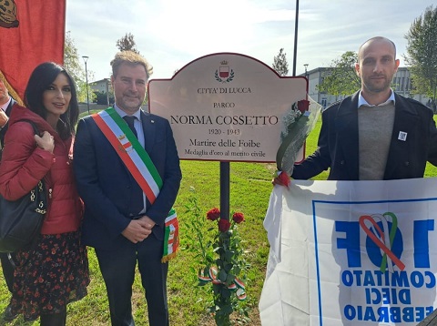 Il Comitato 10 Febbraio di Lucca esprime piena soddisfazione per l'inaugurazione del parco pubblico intitolato a Norma Cossetto nel quartiere di San Marco a Lucca. "Quella di oggi – dice il Comitato 10 Febbraio di Lucca – è stata una bellissima giornata che ha coronato un percorso in cui il Comune di Lucca, durante quest'anno, ha inteso sensibilizzare e ricordare Norma Cossetto, la giovane studentessa istriana di 23 anni, seviziata ed uccisa dai partigiani comunisti filo jugoslavi, insignita nel 2005 della Medaglia d'Oro al Merito Civile e divenuta simbolo di tutti i Martiri delle Foibe." Presente alla cerimonia anche Francesca Carpenetti del Direttivo Nazionale del Comitato 10 Febbraio e figlia di seconda generazione di esuli istriani. "Una cerimonia toccante e partecipata - dichiara Carpenetti - in questa bellissima città che ha dimostrato tutto il suo attaccamento a Norma Cossetto. Eccellente la scelta di un grande parco giochi pubblico incastonato fra le scuole, che Norma Cossetto amava tanto, coltivando il sogno di fare un giorno l'insegnante. E caso ha voluto che il parco sia proprio nel quartiere cittadino di San Marco, il santo indissolubilmente legato a Venezia, i cui leoni alati costellano le pietre delle città e dei borghi d'Istria e Dalmazia, segnando il millenario legame fra l'Italia e le terre dell'Adriatico Orientale." "La strada da percorrere – conclude il Comitato 10 Febbraio di Lucca – è ancora molta, ma con amministrazioni come quella di Lucca e con la sinergia fra le varie associazioni culturali e degli esuli, possiamo fare tanto per ravvivare ancor di più il ricordo, attraverso la storia, la cultura e la memoria."