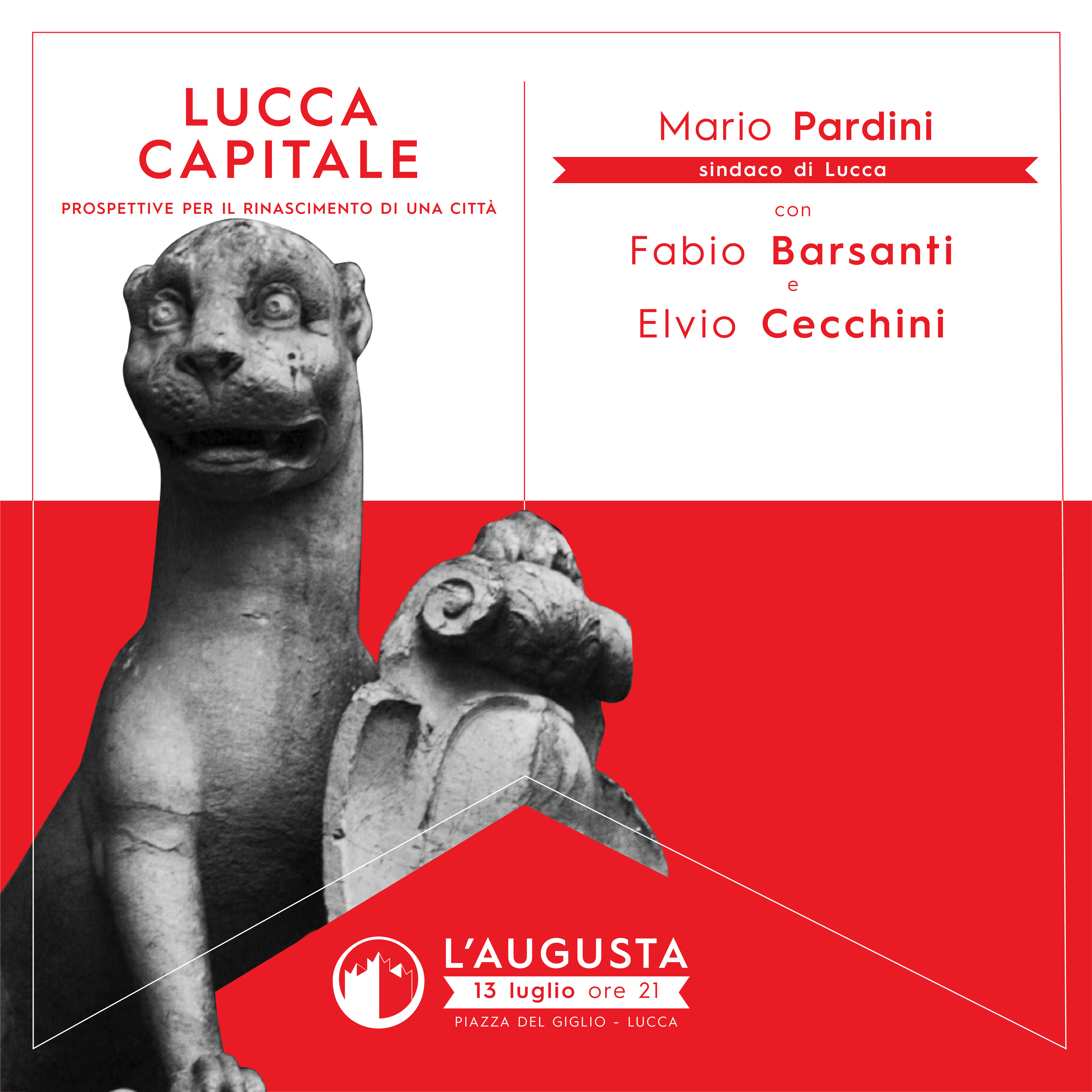 Mercoledì 13 luglio in piazza del Giglio, inizierà alle ore 21 la terza edizione del festival culturale L’Augusta - la Fortezza delle Idee. Ospiti del primo incontro il neo sindaco Mario Pardini, accompagnato da Fabio Barsanti ed Elvio Cecchini. Titolo dell’incontro ‘Lucca Capitale - prospettive per il Rinascimento di una città’.