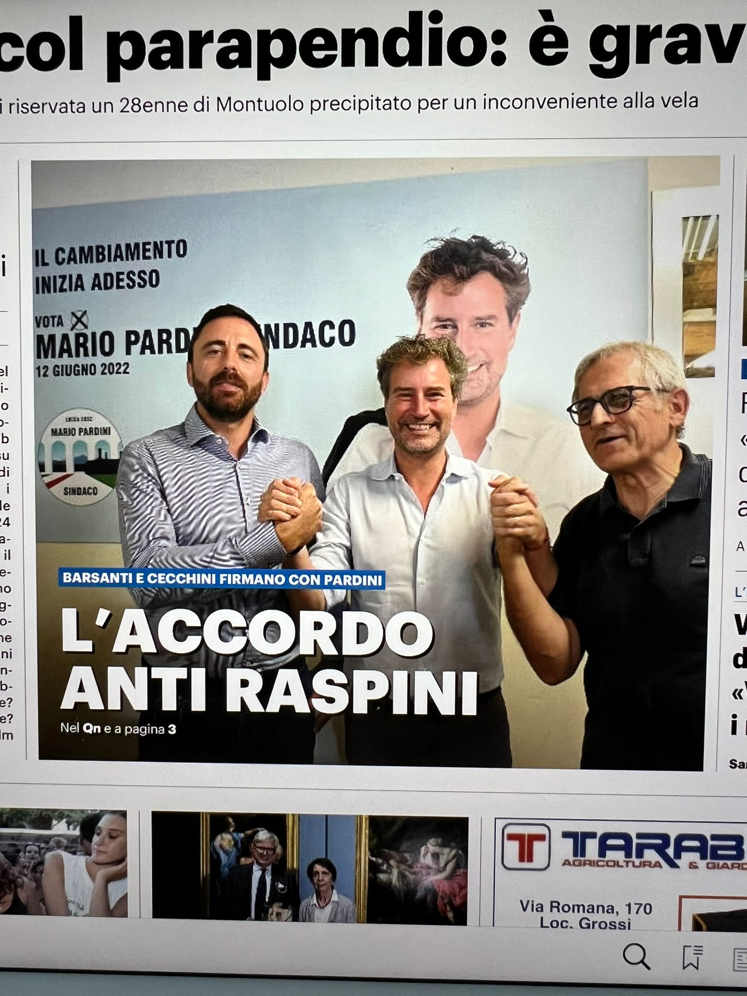 A qualche lettore non deve essere piaciuta la prima pagina del giornale fiorentino filiale di Lucca dedicata all'accordo tra Mario Pardini, Fabio Barsanti e Elvio Cecchini. Lo abbiamo dedotto dai messaggi che ci sono arrivati con tanto di foto e richiesta di un parere. Che dire? Trenta anni fa chi scrive si lamentava dello sfacciato appoggio che, ad ogni elezione, il giornale dava al centrodestra. Evidentemente, oggi, non si lamenterebbe più. Di sicuro qualcosa, rispetto, ad allora, è cambiato e non soltanto il direttore responsabile del quotidiano storico toscano. Rispettiamo le scelte del caposervizio attuale e non intendiamo intrometterci più di tanto, quindi, se avete da protestare, è semplice: chiamate in piazza del Giglio e dite quello che pensate senza fronzoli, siamo certi che vi ascolteranno come abbiamo sempre fatto anche ai nostri tempi. Che, poi, vi diano retta, beh, questa è un'altra storia.