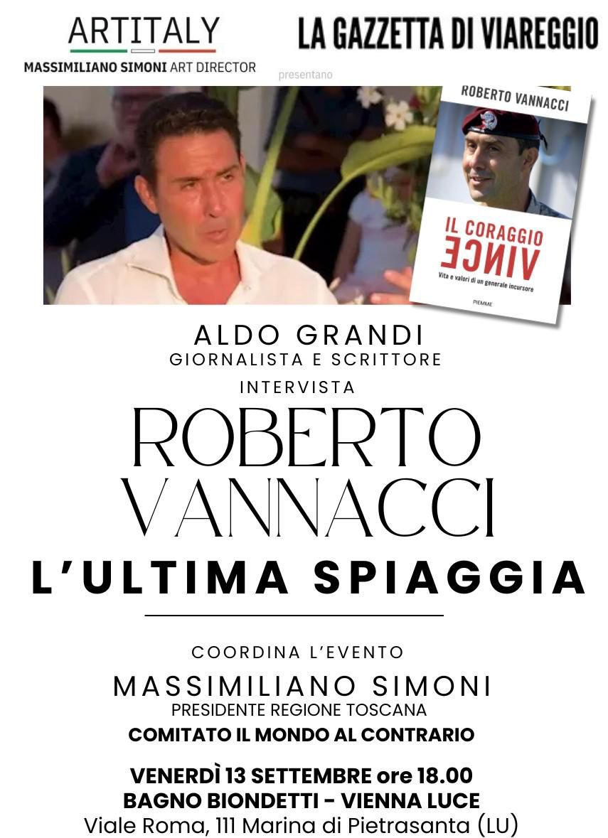 L'appuntamento di venerdì 13 dicembre, organizzato da ArtItaly di Massimiliano Simoni, presidente regionale del comitato Il mondo al contrario, dalla Gazzetta di Viareggio e dalla famiglia Menici del Bagno Biondetti-ViennaLvce, vuole anche essere l'occasione per dimostrare ancora una volta l'affetto e la vicinanza di chi vede, realmente, nella figura del generale di divisione... l'ultima spiaggia. Sarò proprio questo il tema portante dell'evento versiliese. L'ultima spiaggia, come il film del grande Stanley Kramer del 1959 con attori indimenicabili come Ava Gardner, Gregory Peck, Fred Astaire e Anthony Perkins. La storia di un sommergibile che, all'indomani di una guerra nucleare, vaga alla ricerca di una umanità senza più trovarla. Così anche Vannacci rappresenta, in Italia, l'ultima spiaggia a cui cercare di aggrapparsi prima di essere travolti dal mare indistinto e inarrestabile di un politicamente corretto e di un mondo realmente lontano anni luce dal buonsenso cui dovrebbe, invece, ispirarsi.