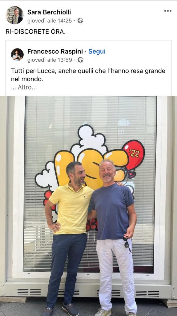 Se qualcuno, anche alla luce di quanto era stato artatamente diffuso prima del ballottaggio, si augurava che la storia d'amore tra la città di Lucca e Mimmo D'Alessandro, promoter da 23 anni del Summer Festival, manifestazione che è servita a far conoscere in tutto il mondo la città di Lucca, fosse giunta al capolinea, beh, si sbagliava di grosso. Certo, Francesco Raspini aveva pubblicato un post il giovedì precedente in cui si vede D'Alessandro sorridente abbracciato a Raspini, ma un vincitore sa essere magnanimo e comprendere quando e dove è giusto comprendere. Molti sostenitori del neo sindaco non hanno gradito, ma crediamo sia necessario andare al di là dell'emotività e mettersi in testa una volta per tutte che Lucca e il Summer Festival sono una... endiadi a prescindere da chi siede a palazzo dei Bradipi.
