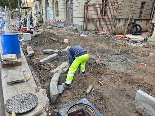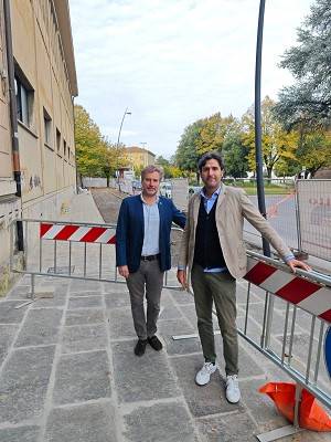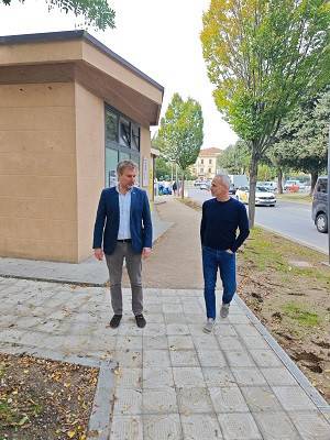 Sopralluogo del sindaco Mario Pardini e dell'assessore ai lavori pubblici Nicola Buchignani ai cantieri di riqualificazione dei marciapiedi e percorsi ciclo pedonali. In particolare sul lato sud di viale Cavour si sta realizzando un nuovo collegamento ciclopedonale fra la Stazione ferroviaria e il sottopasso di San Concordio con inserimento di un percorso a punti led che darà nuova sicurezza ai cittadini.