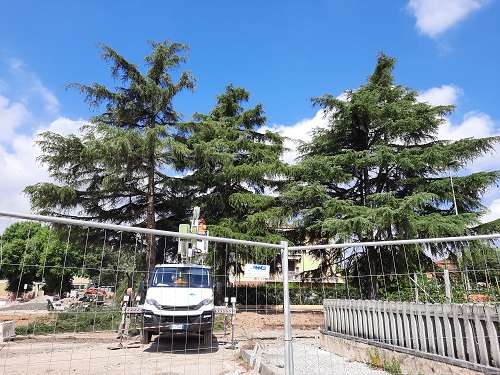 Era il 23 luglio del 2020. Decine di residenti accorsero in piazza Aldo Moro ove il Comune stava abbattendo i grandi alberi che si trovavano nella grande "aiuolona" centrale. Il progetto definitivo approvato dalla Giunta non prevedeva l'abbattimento di quegli alberi. Che sarebbero stati conservati era stato annunciato sui quotidiani, pochi giorni prima, dal consigliere comunale che più seguiva il progetto della cd "Galleria coperta" e la richiesta del loro mantenimento era uno dei punti principali della petizione popolare, sottoscritta da più di mille firme, che era stata presentata al Comune di Lucca. Soprattutto, non c'era nessuna necessità di abbatterli: si trovavano in mezzo ad una grande aiuola, non davano noia a nessuno, non erano di intralcio, non erano pericolanti. I cittadini del Comitato erano convinti che quella mattina gli operai li stessero abbattendo per errore e mostrano loro le carte del progetto approvato dalla Giunta, da cui risultava inequivocabilmente che quegli alberi andavano conservati. Non potevano sapere che era stata recentemente approvata una Determina Dirigenziale che prevedeva il taglio della parte sud della "aiuolona", per far passare le tubazioni interrate, e, di conseguenza, l'abbattimento dei grandi alberi, tra cui due dei tre imponenti cedri del Libano. Ma avrebbe potuto, una determina dirigenziale, modificare un atto della Giunta in un aspetto così significativo del progetto? E poteva del verde pubblico essere trasformato in parcheggio senza una variante urbanistica? Quella mattina alcuni cittadini si misero pacificamente sotto gli alberi, nell'intento di ritardare l'abbattimento e far sì che il Comune, all'interno del quale c'erano evidenti divergenze, chiarisse la sua posizione. Vengono chiamate le forze dell'ordine, che identificano i presenti, la recinzione del cantiere viene rinforzata e a fine mattina è portato a termine l'abbattimento del primo albero. Dopopranzo i cittadini accorsero ancora più numerosi per cercare di salvare almeno il secondo grande cedro, di cui erano già state tagliate grandi branche. I lavori erano stati temporaneamente sospesi, in attesa di una decisione del Comune. Il sindaco arriva nel primo pomeriggio e si ferma pochi minuti; i cittadini si aspettavano che fermasse l'abbattimento del secondo cedro e del grande acero, invece ordina la ripresa dei lavori, al che tutti i presenti cercano di tornare a posizionarsi sotto gli alberi. Ma ora il cantiere è rigidamente transennato e presidiato da molti agenti di polizia e vigili urbani e solo una persona riesce a oltrepassare le transenne, subito fermata. In meno di un'ora il secondo cedro viene abbattuto e vengono portate via quasi tutte le ramaglie. Il giorno dopo il Comune sostiene sulla stampa che il Comitato era d'accordo con l'abbattimento degli alberi, affermazione che lascia stupefatti i cittadini, per i quali la conservazione di quegli alberi non solo era uno dei punti principali della petizione, ma risultava anche espressamente richiesta in uno degli ultimi incontri che c'era stato tra il Comitato e i rappresentanti comunali, come risultava dal verbale da questi ultimi controfirmato.