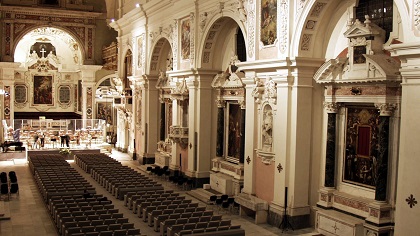 Saranno sostituiti il palco e la pedana della platea. In particolare il nuovo palco sarà realizzato in una forma più armonica rispetto all'architettura della chiesa: il boccascena largo circa 6,90 metri in linea con le poltrone della platea, si allargherà in corrispondenza dell’inizio del transetto per nascondere alla vista del pubblico le scalette laterali di accesso, per poi restringersi nuovamente verso l’altare maggiore. Questa forma, che rispetta gli allineamenti architettonici risulterà più proporzionata e meno invasiva rispetto a quella del palco esistente e sarà inoltre alla stessa altezza dell'altare in modo da valorizzare il cannocchiale prospettico e la zona monumentale della tribuna. La nuova rampa, necessaria al superamento delle barriere architettoniche, abbraccerà il lato sinistro dell’altare, senza interferirvi. Anche questa soluzione rispetto allo stato attuale cerca di inserirsi maggiormente nel contesto, liberando lo spazio di fronte alle cappelle laterali decorate sulle volte e sulle pareti da grandi apparati illusionistici. La pedana della platea esistente, dove sono posizionate le poltroncine per il pubblico, verrà smontata, rimossa e ricostruita con un sistema integrato di riscaldamento invernale o raffrescamento estivo.