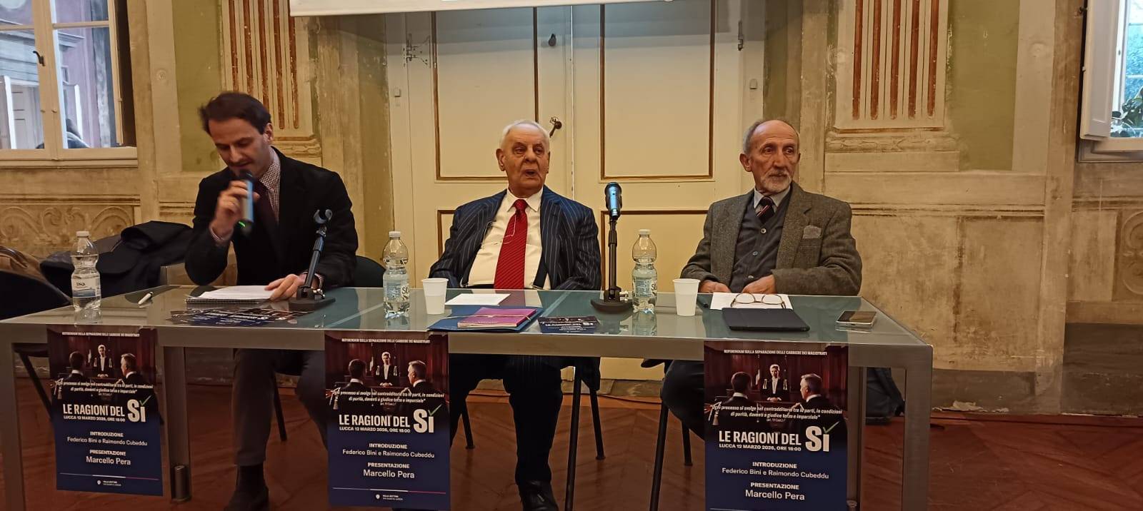“L’articolo 111 della Costituzione che richiama alla separazione delle carriere ed al giusto processo – ha concluso Bini – non fa riferimento alla destra o alla sinistra, ma richiama i concetti di umanità e di civiltà di una moderna democrazia liberale. La giustizia, ed il potere giudiziario, è uno dei tre cardini dello stato liberale ed allora votare “sì” o “no” a questo referendum non è un voto pro o contro il governo attuale ma è votare pro o contro un’idea di Italia liberale, civile, democratica ed egualitaria”. E’ stata poi la volta del professor Cubeddu che ha tenuto a sottolineare l’importanza della “battaglia” referendaria, con un valore ed un importanza che va al di là di quello che è la posta in gioco, ovvero una semplice riforma di una parte dell’ordinamento giudiziario, banale perché scontata e che consentiva di allineare l’Italia all’Europa e di porre rimedio all’improvvida decisione, di marca fascista, di unificare le carriere dei magistrati.
