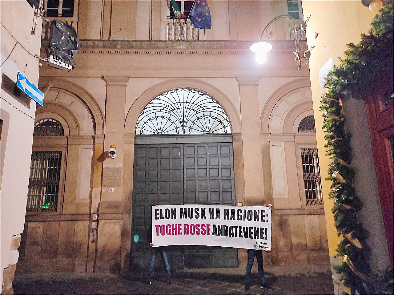 "Elon Musk ha ragione, toghe rosse andatevene!". Questo è il testo di uno striscione esposto dai militanti della Rete dei Patrioti, di fronte ai tribunali di Firenze, Prato, Lucca e Pistoia.