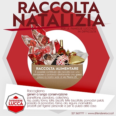 In vista delle feste natalizie Difendere Lucca comunica aperture straordinarie della propria sede in via Pisana 25, per tutto il mese, per la raccolta alimentare in favore delle famiglie lucchesi in difficoltà.