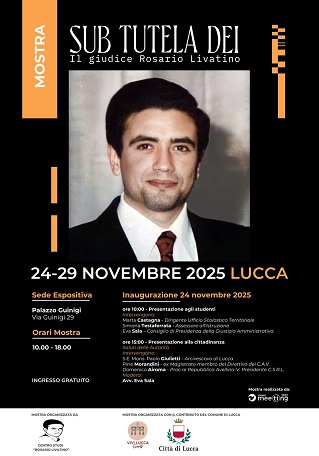 Nelle sale al piano terra del Palazzo Guinigi il 24 novembre sarà inaugurata una mostra dedicata a Rosario Livatino, il giudice assassinato all’eta di 38 anni dalla mafia nel 1990 mentre, privo di scorta, si recava al Tribunale di Agrigento, ove prestava servizio.